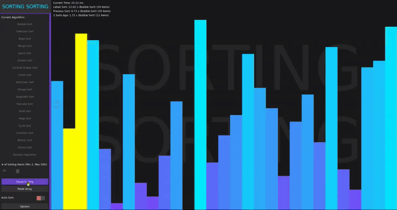 Sorting Sorting is an interactive and visually striking sorting algorithm visualizer.